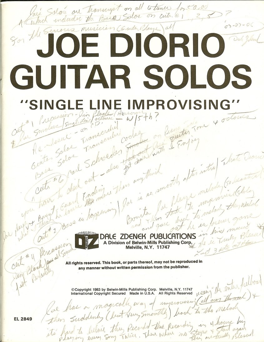 The book contains the transcribed solos from Joe Diorio's "Bonita" album. |