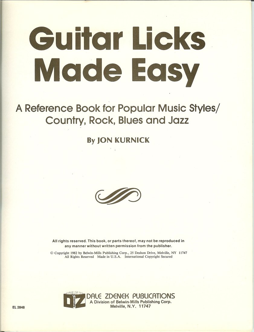 Guitar Licks Made Easy 1st Edition By John Kurnick Editions:
