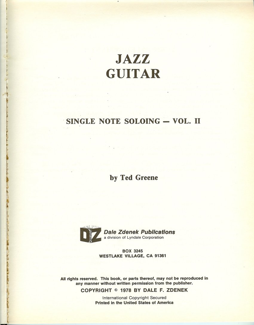 Copyright © by Alfred Publishing Co., Inc. All rights reserved. TedGreeneBookEditions.com © Dale Zdenek 2007 |