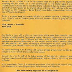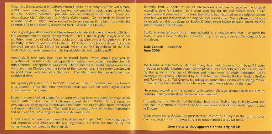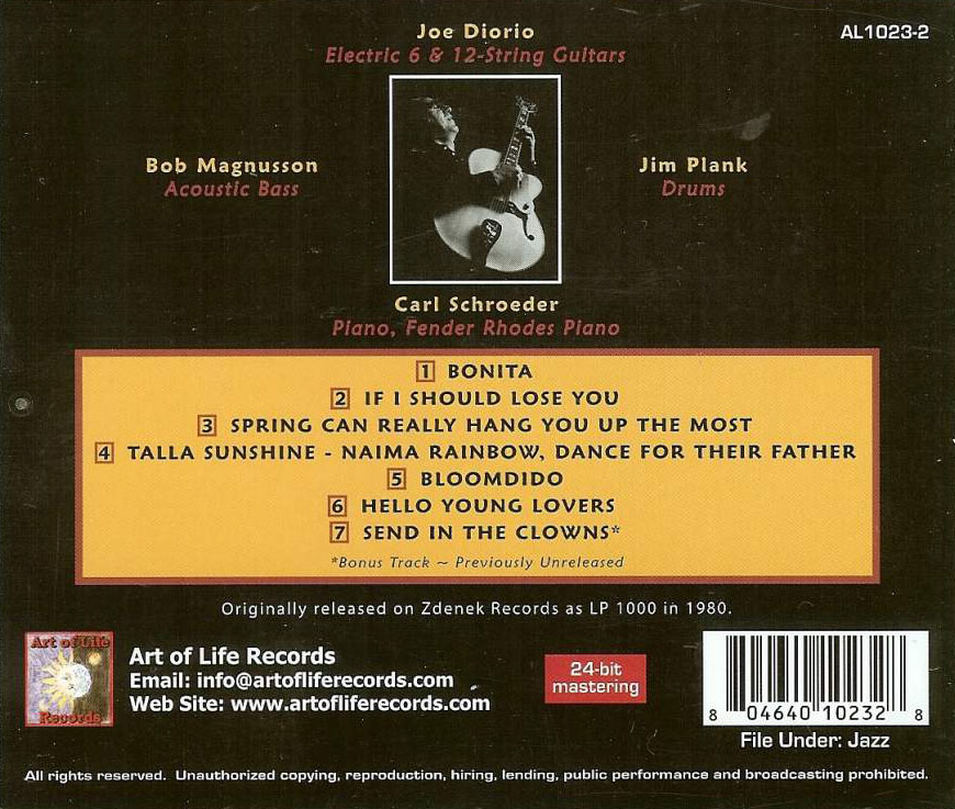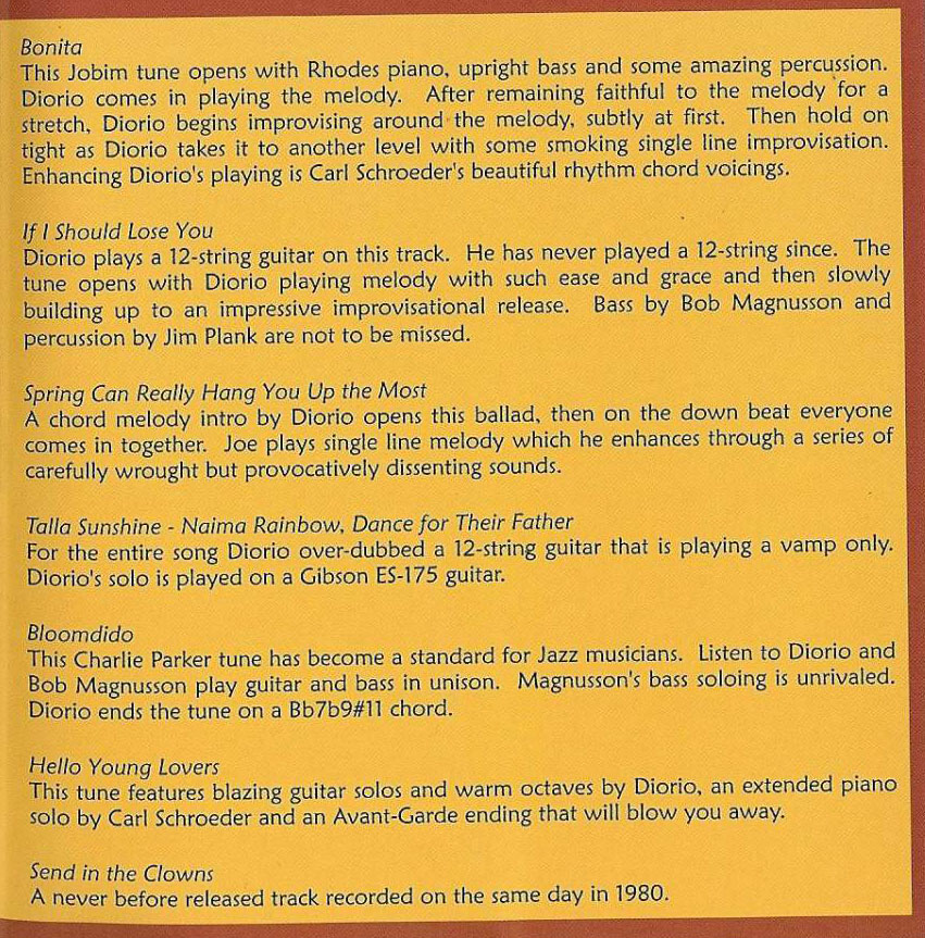 Back cover of the Joe Diorio Bonita CD. |