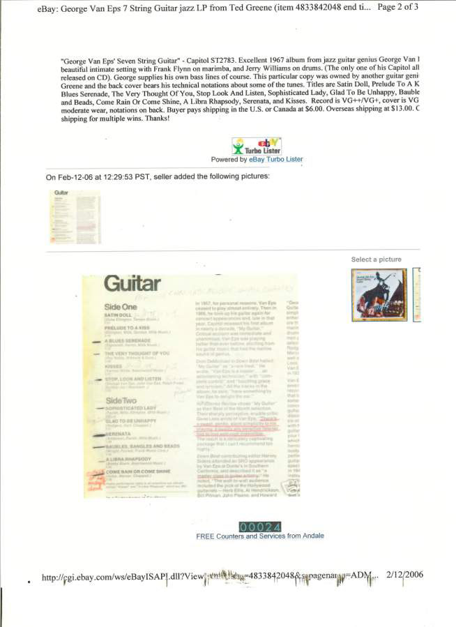 Dale's Guitar Store. Ted Greene was a Guitar Instructor for many years at our music store. Ted had a waiting list of over 100 students who wanted to study from him. Ted would give each of these students a lesson which would keep them busy for a few months until he could fit them in. |