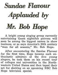 The Group is called The Sundae Flavour. We opened for Bob Hope on his College Concert Tours. I am the guy in the back with a beard. Ted Greene and Linda Zdenek would help watch the guitar store when I was on the road. |