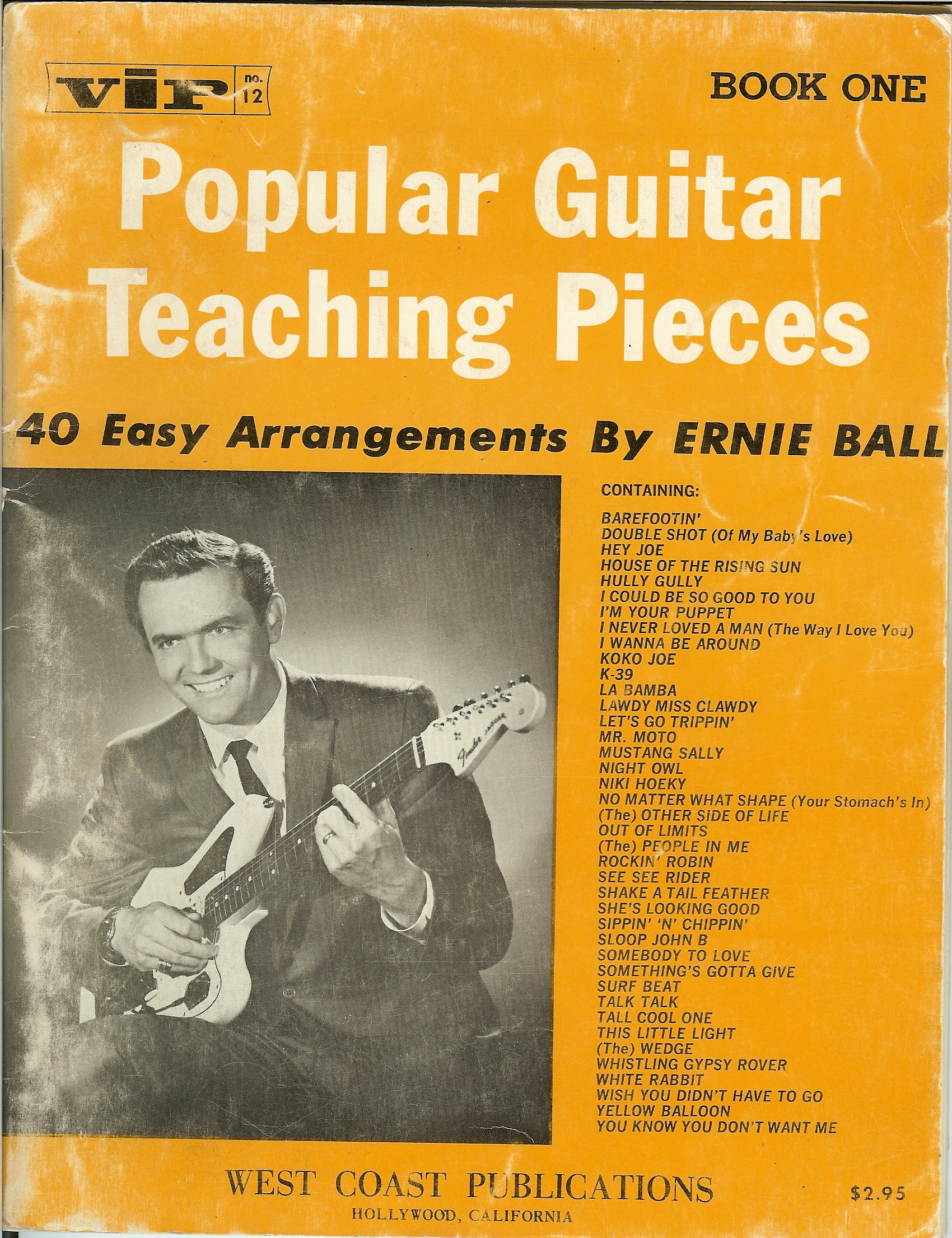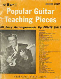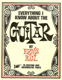 This book was arranged by Ernie Ball prior to Ernie developing his Super Slinky Guitar Strings. The picture of Ernie was taken in his young 20's. The guitar on the cover is a Fender Jaguar. |