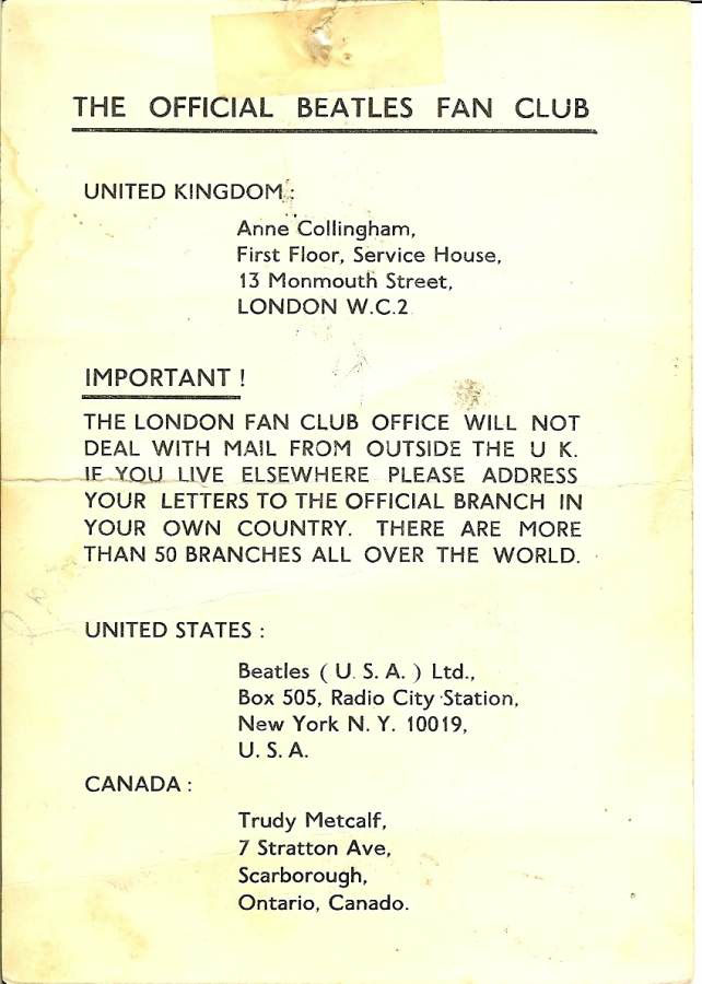 Back of the autographed Beatles picture. |