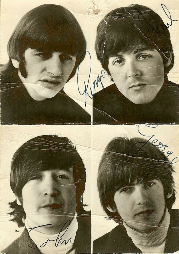Autographed picture of the Beatles. My friend Harvey Wicklund became friends of the Beatles when they were in L.A. The Beatles autographed 20 pictures for Harvey signing only their first name and Harv gave me one. |
