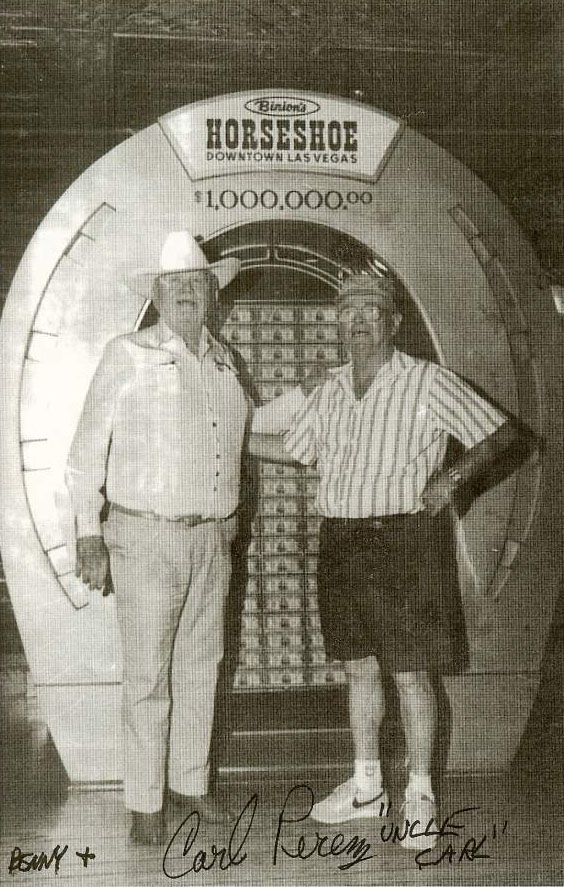 Benny Binion (founder of the Binion's Horseshoe) and Carl Perez. When I first moved to Las Vegas in 1993, Carl Perez, aka Uncle Carl, would book gigs for me. Uncle Carl gave me this photo with Benny's signature. |