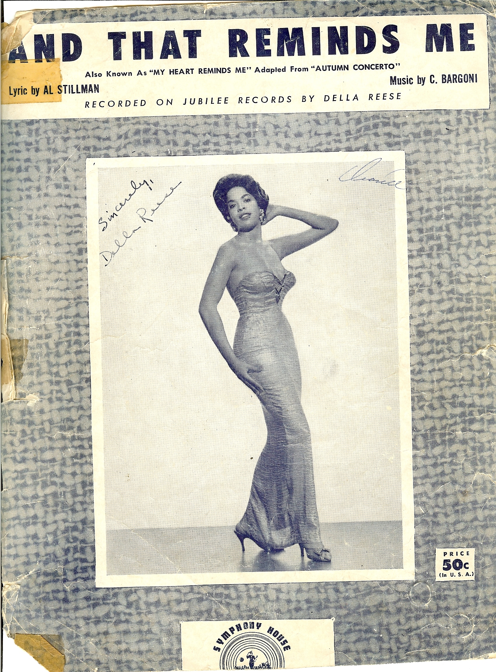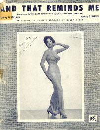 Sheet music with Della Reese on the cover. I met Della Reese in the Green Room of the Steve Allen Show. Every one applauded after her rehearsal, she sounded great. Terry Gibbs was the band leader for the show and Joe Pass was the guitar player. Joe and I had already met at a Christmas party Ernie Ball had for his employees in 1964. Ted Greene was very disappointed that he did not make it. Ted was home practicing. You could go to Ted's home to visit but he never put his guitar down. |