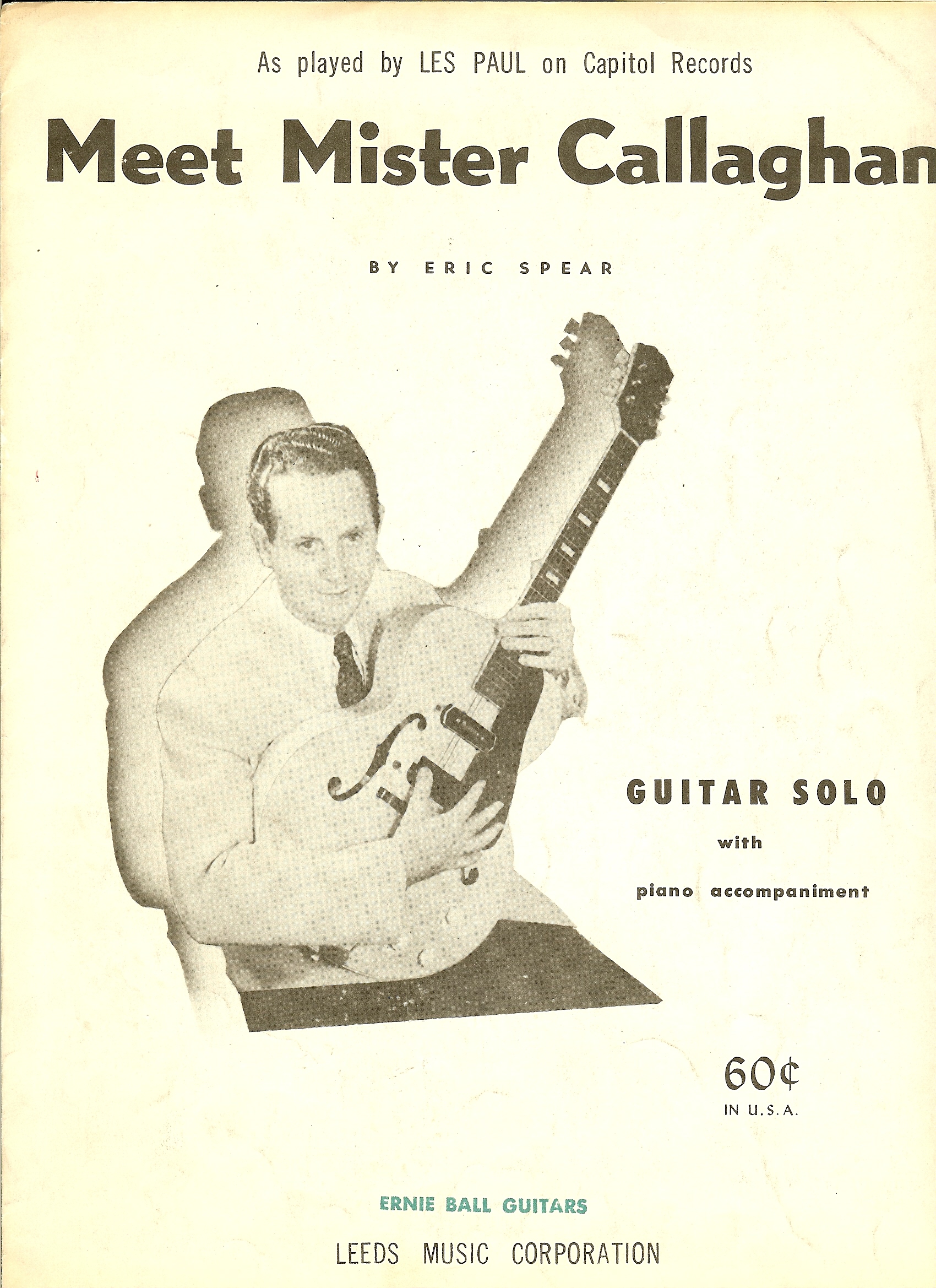 I bought this piece of sheet music while I worked at the Ernie Ball Guitar Studio. Ernie would stamp all sheet music with his business name on it. |