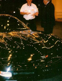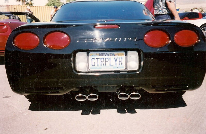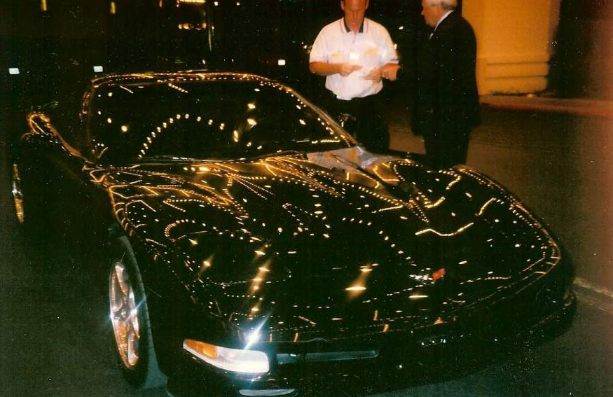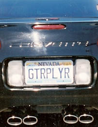 Dale's license plate. Guitar Player. | Dale and the Valet at the Stardust Hotel. It is the lights above that are reflecting on the Vette. |