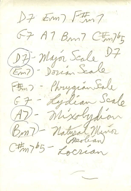 This is Ted Greene's hand writing. He must have written it around 1966. |