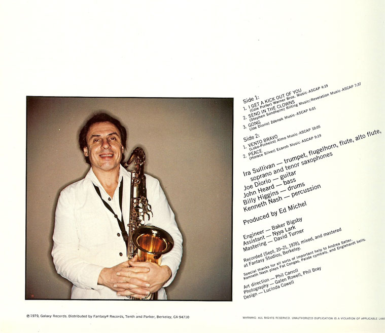 Joe Diorio played on this Ira Sullivan LP and also wrote the tune "Gong". I was fortunate to have published it. Believe it or not we did receive royalties from ASCAP. |