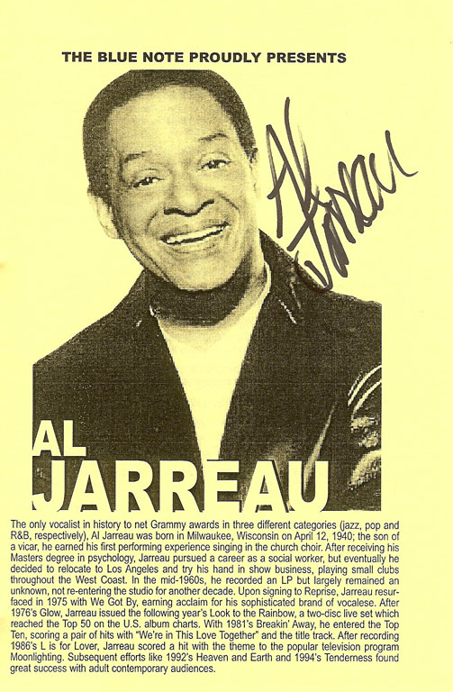 Al Jarreau only gave one autograph that evening and it was to Linda Zdenek. |